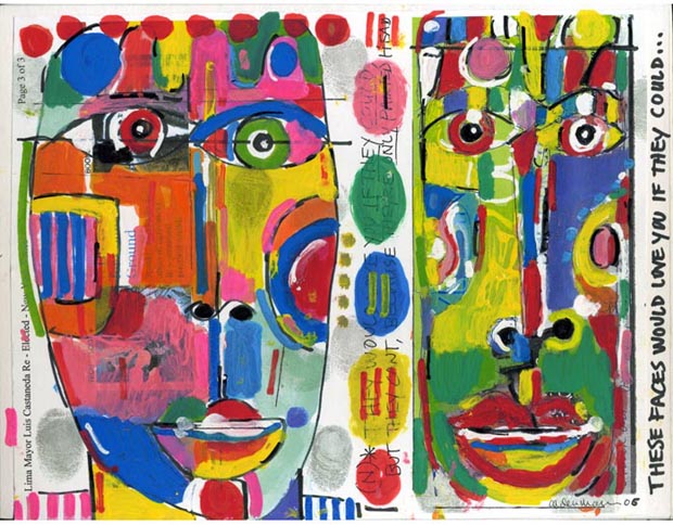 These Faces Would Love You if They Could 2008. 8 x 10 1/2" enamel paint, whiteout and sharpie on book pages