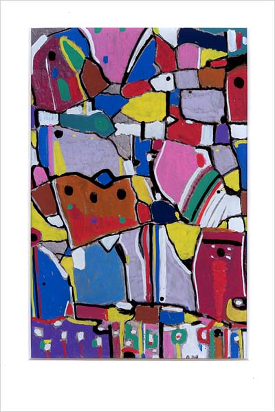 Riven Rock 2001 4 x 6" Whole Foods National wine label art, original---acrylic paint and white out on photog paper.
